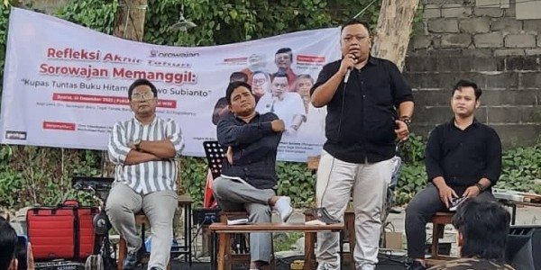 Telusur.co.id - Kelompok aktivis Sorowajan Memanggil Gerak 98, menggelar diskusi, penampilan dan bedah Buku Hitam Prabowo