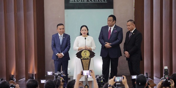 Telusur.co.id -Ketua DPR Puan Maharani (kedua kiri) bersama Wakil Ketua DPR Sufmi Dasco Ahmad (kiri), Rachmat