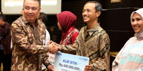 Telusur.co.id - Plt Direktur Utama Bank BTN Oni Febriarto menyerahkan secara simbolis penyaluran Kredit Usaha Rakyat