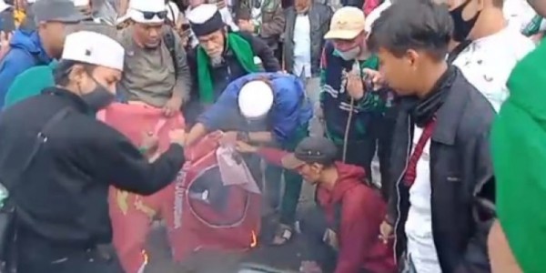 Telusur.co.id - Aksi pembakaran bendera PDIP saat unjuk rasa penolakan Rancangan Undang-Undang Haluan Ideologi Pancasila (RUU