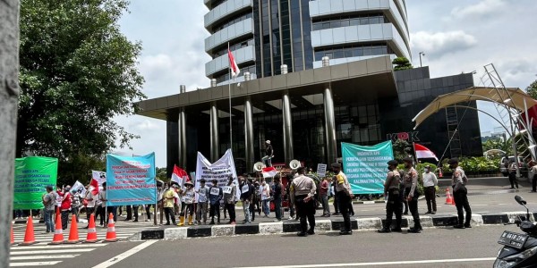 Telusur.co.id - Ratusan massa yang tergabung dalam Masyarakat Anti Perampasan Aset Negara (MAPAN) mendesak Komisi Pemberantasan Korupsi
