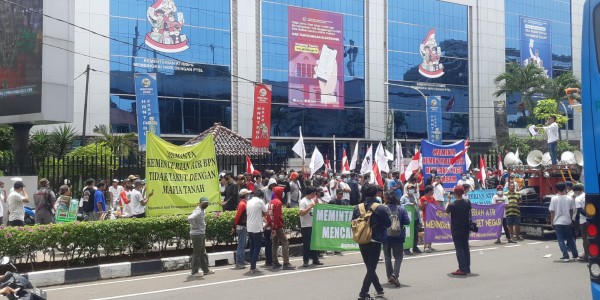 Telusur.co.id - Ratusan masyarakat yang tergabung dalam Masyarakat Anti Perampasan Aset Negara (MAPAN) mendesak Kementerian ATR/BPN