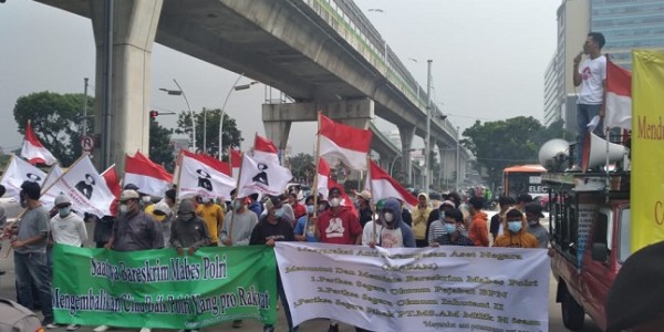 Telusur.co.id - Kelompok masyarakat yang tergabung dalam Masyarakat Anti Perampasan Aset Negara (Mapan) mengelar aksi damai
