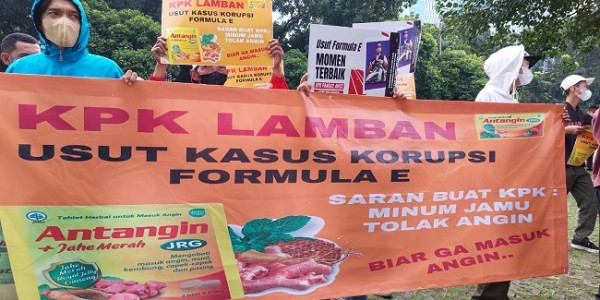 Telusur.co.id - Kelompok massa tergabung dalam Satgas Pemburu Koruptor kembali menyambangi Gedung Merah Putih Komisi Pemberantasan