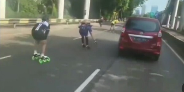 Telusur.co.id - Sebuah video yang memperlihatkan sekelompok pesepatu roda melintas di tengah jalan kawasan Jalan Gatot