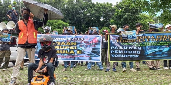 Telusur.co.id - Kelompok massa yang tergabung dalam Gerakan Satu Padu (SAPU) Lawan Koruptor Formula E berunjuk