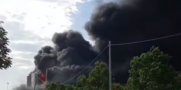 Telusur.co.id - Api melalap pabrik korek api di Kompleks Pergudangan Sungai Turi, Pakuhaji, Kabupaten Tangerang, Selasa (2/11/21).