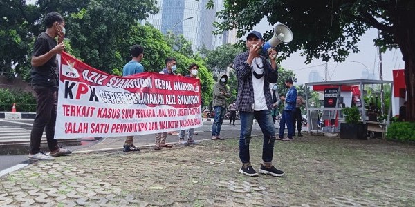 Telusur.co.id - Massa yang mengatasnamakan Kelompok Organisasi Mahasiswa Indonesia menggelar aksi di depan gedung Komisi Pemberantasan