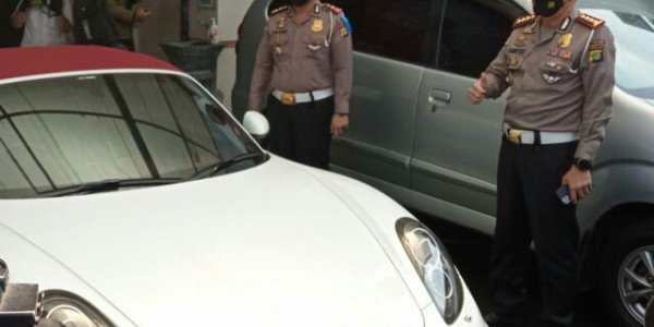 Telusur.co.id - Subdit Gakkum Ditlantas Polda Metro Jaya mengamankan mobil mewah Porsche Boxster warna putih dengan nomor