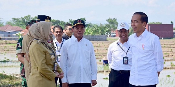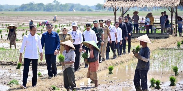 Telusur.co.id - Presiden Joko Widodo meninjau penanaman padi dan menyerap aspirasi para petani di Kecamatan Kesesi,