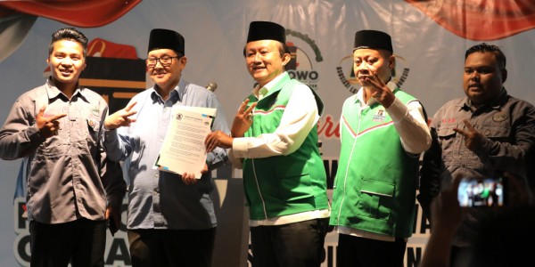 Telusur.co.id -Mantan Ketua Umum Angkatan Muda Kabah (AMK), Joko Purwanto (ketiga kanan) menyerahkan dokumen deklarasi kepada