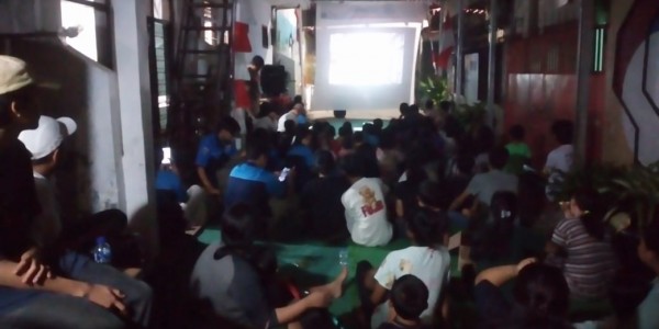 Telusur.co.id - Puluhan anak-anak bersama warga RW 01 Kelurahan Pasar Baru, Jakarta Pusat, menggelar nonton bareng