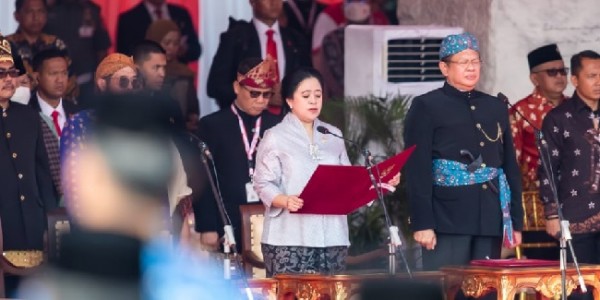 Telusur.co.id - Ketua DPR RI Puan Maharani didaulat membacakan naskah pembukaan Undang-Undang Dasar 1945, dalam upacara