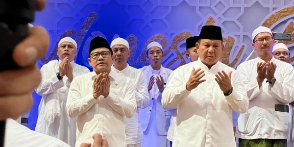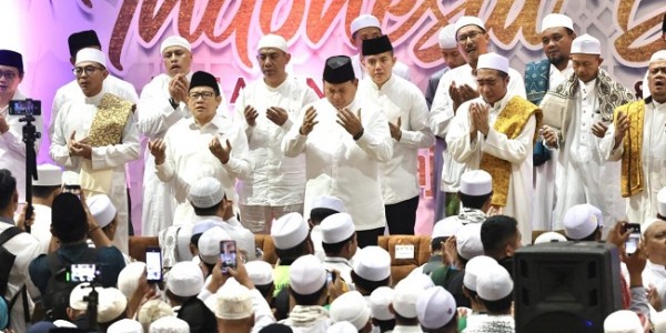 Telusur.co.id - Menteri Pertahanan RI Prabowo Subianto menghadiri acara Indonesia Bermunajat bersama Majelis Riyadhul Jannah Indonesia