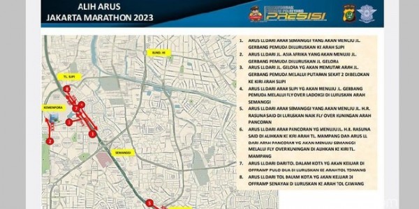 Telusur.co.id - Pelaksanaan ajang Jakarta Marathon 2023 berlangsung Minggu (22/10/23), mulai pukul 04.00 WIB hingga 10.00
