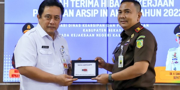Telusur.co.id - Sekretaris Daerah (Sekda) Kabupaten Bekasi, Dedy Supriyadi, melakukan serah terima hibah penataan arsip aktif