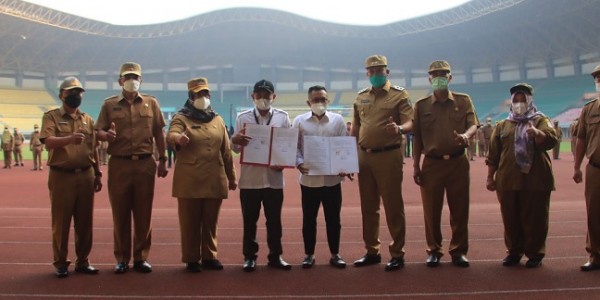 Telusur.co.id - Pelaksana Tugas (Plt) Wali Kota Bekasi, Tri Adhianto bersama Sekretaris Daerah Kota Bekasi, Reny