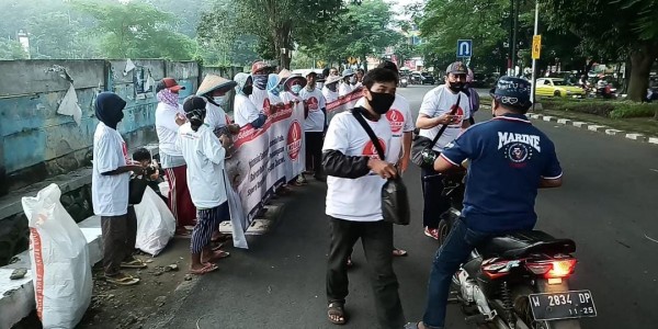 Telusur.co.id - Sejumlah warga Gresik bersama Koalisi Bersama Rakyat (KOBAR), menggelar aksi berbagi takjil dan membentangkan