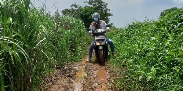 Telusur.co.id - Kondisi jalan alternatif dari arah Kampung Baru, Desa Kedung Pengawas yang menghubungkan ke Kampung