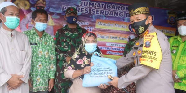 Telusur.co.id - Kapolres Serdang Bedagai AKBP Robin Simatupang membagikan sembako kepada masyarakat yang terdampak pandemi Covid-19