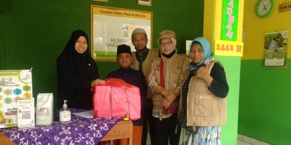 Telusur.co.id - Pengurus dan anggota Yayasan Arwana Empat Delapan Delapan membagikan ratusan paket snack box ke