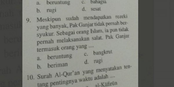 Telusur.co.id - Sebuah pertanyaan di buku pelajaran yang menyebut nama Ganjar, viral di media sosial (medsos).
