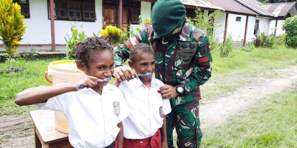 Telusur.co.id - Satgas Pamtas RI-PNG Yonif Mekanis Raider 413 Kostrad Pos Yetti memberikan pendidikan kepada Siswa