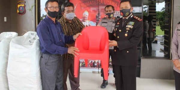 Telusur.co.id - Kapolres Serdang Bedagai AKBP Robin Simatupang menyerahkan bantuan 50 kursi belajar anak kepada Pengurus