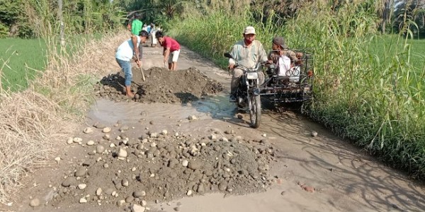 Demi Perubahan, Warga Lubuk Rotan Gotong Royong Timbun Jalan Rusak