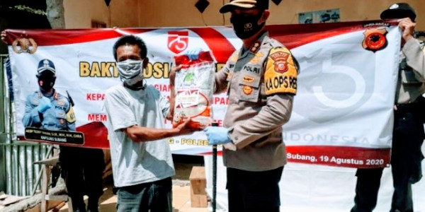Telusur.co.id - Polres Subang menggelar bakti sosial (Baksos) bagi - bagikan paket sembako beras sebanyak 13