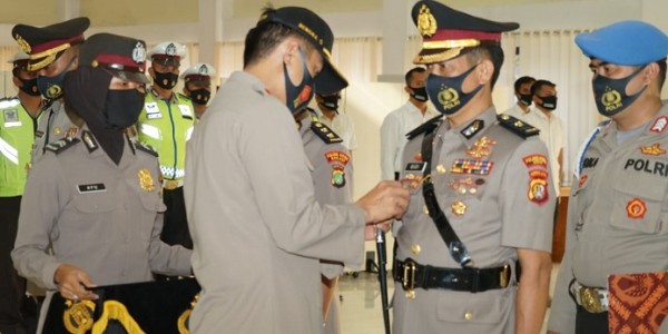 Telusur.co.id - Polres Metro Bekasi melakukan serah terima jabatan pada kepala satuan lalu lintas dan kepala