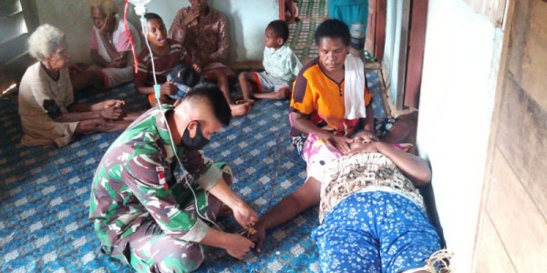 Telusur.co.id - Personel Komando Distrik Militer 1709/Yapen Waropen (Kodim 1709/Yawa) yang tergabung dalam Satgas TNI Manunggal