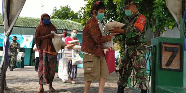 Telusur.co.id - Ratusan paket sembako terlihat berjejer rapi di halaman Makoramil Pabean Cantian, Kodim Tipe A