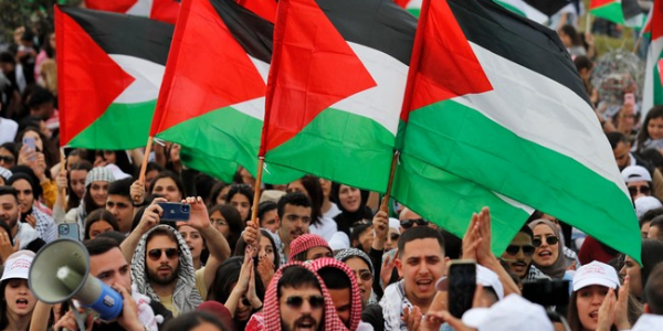 Telusur.co.id - Warga Palestina di Jalur Gaza yang diduduki Israel mengadakan demonstrasi menentang apa yang disebut