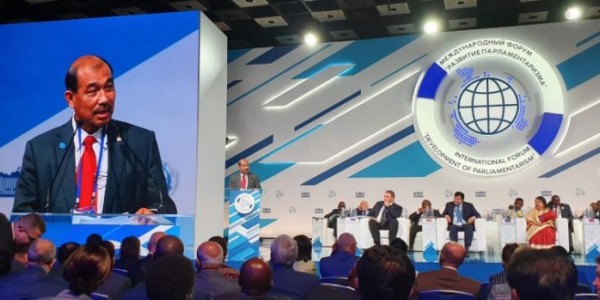 Telusur.co.id - Wakil Ketua DPR RI Fadli Zon memberikan pidato di depan Second International Forum “Development of