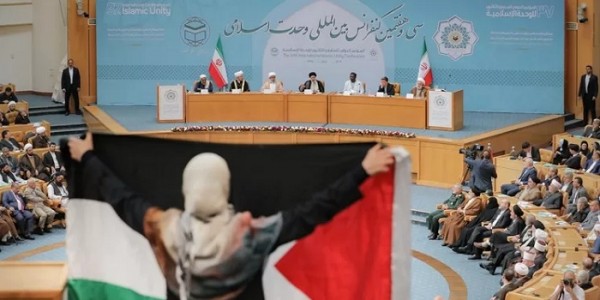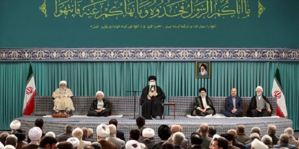 Telusur.co.id - Pemimpin Besar Iran Ayatullah Sayid Ali Khamenei dalam pertemuan dengan para peserta Konferensi Internasional