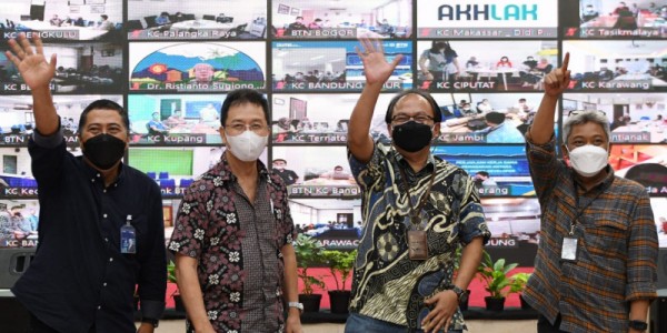 Telusur.co.id -Direktur Consumer PT Bank Tabungan Negara (Persero) Tbk, Hirwandi Gafar (tengah) mengangkat jempol usai menyaksikan