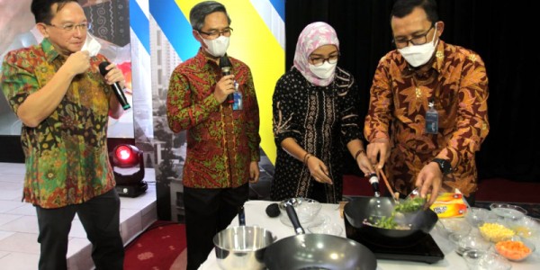 Telusur.co.id -Direktur Utama PT Bank Tabungan Negara (Persero) Tbk. Haru Koesmahargyo (kanan) memasak menggunakan kompor induksi