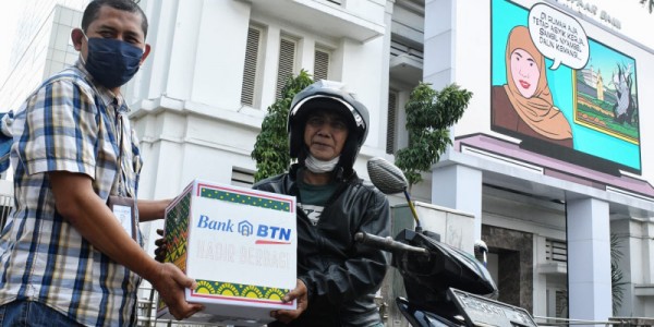 Telusur.co.id Bank Tabungan Negara (Persero) Tbk berbagi sembako Ramadhan kepada para tukang ojek pangkalan yang mangkal