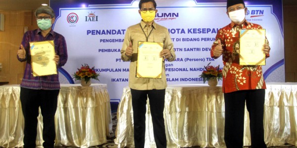 Telusur.co.id - Direktur Utama PT Bank Tabungan Negara (Persero) Tbk, Pahala N. Mansury (tengah) menandatangani Nota