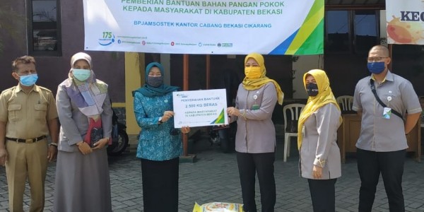 Telusur.co.id - Badan Penyelenggara Jaminan Sosial Ketenagakerjaan (BP Jamsostek) Bekasi Cikarang menyalurkan bantuan berupa beras untuk