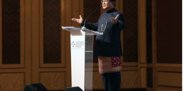 Telusur.co.id - Calon presiden Prabowo Subianto menghadiri acara Indonesia Economic Forum yang digelar di Shangri-La Hotel, Karet,